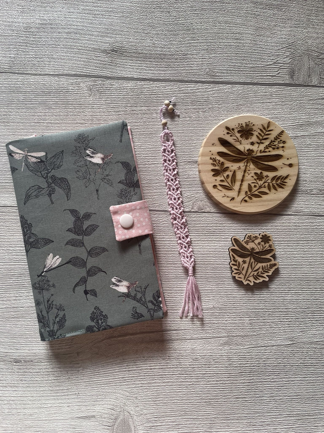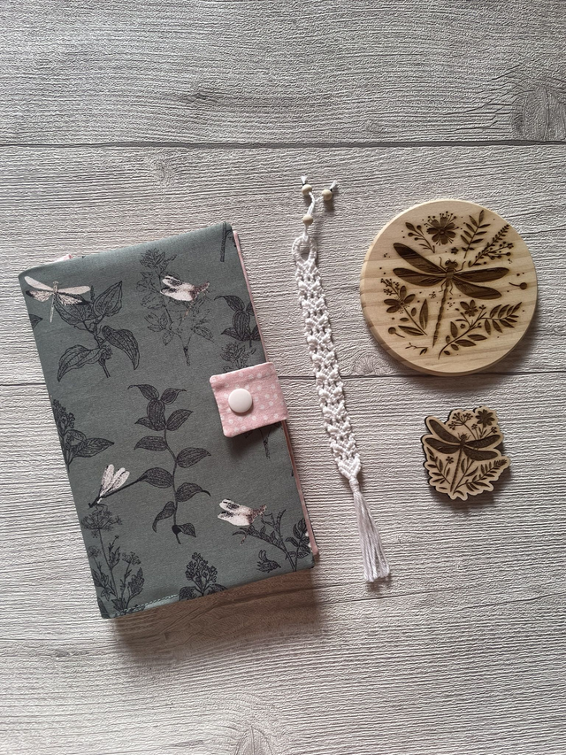 🌙Coffret Lecture "Secret de Lune" – Couvre-livre & Accessoires – Motif Libellule