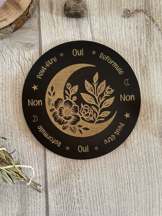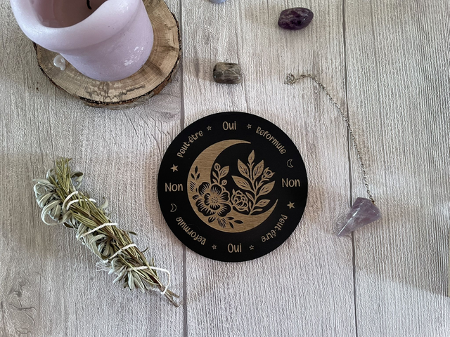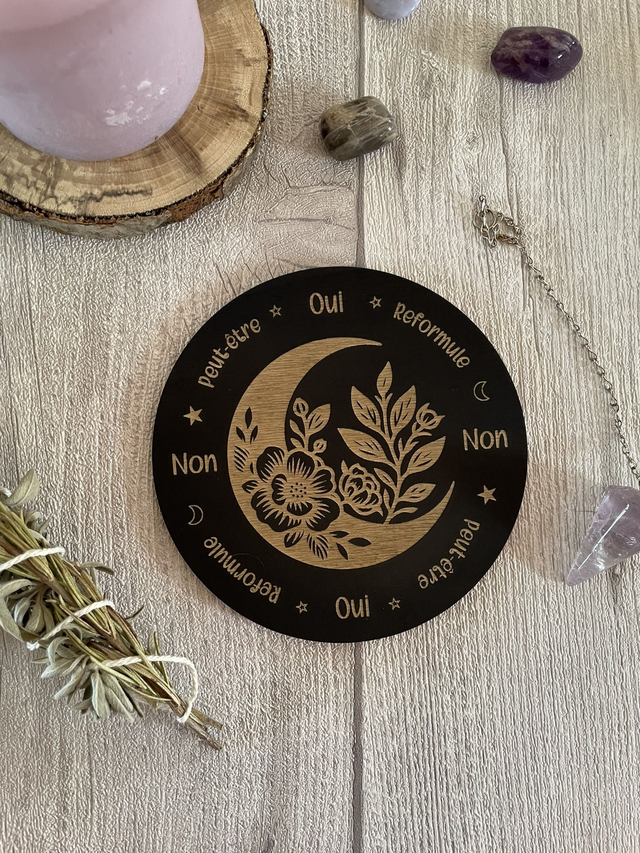 🖤🌙Planche de divination au pendule - Lune et motif floral sur fond noir