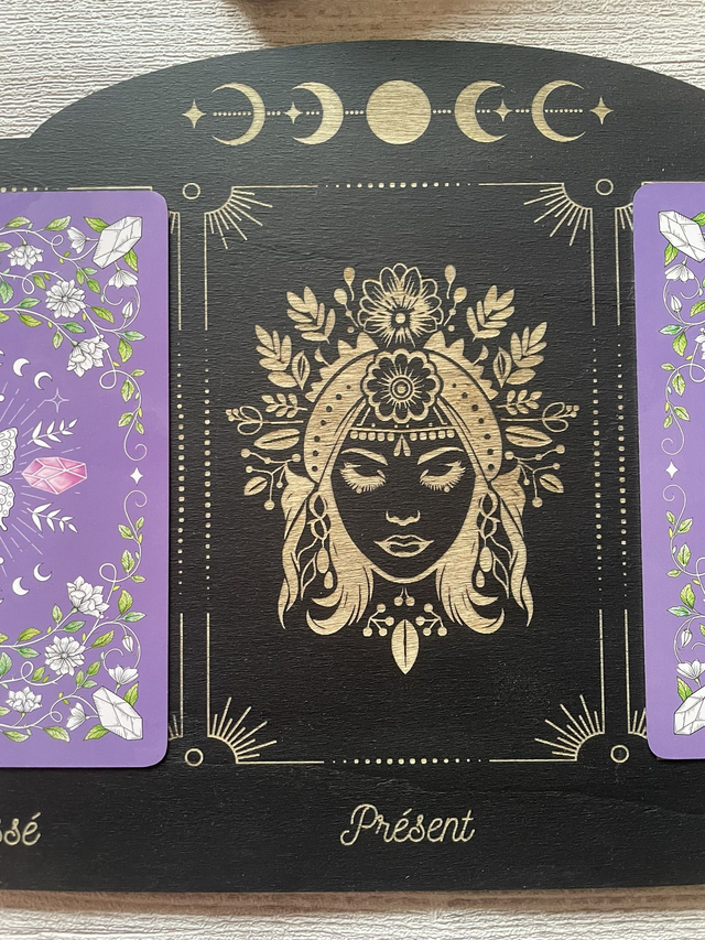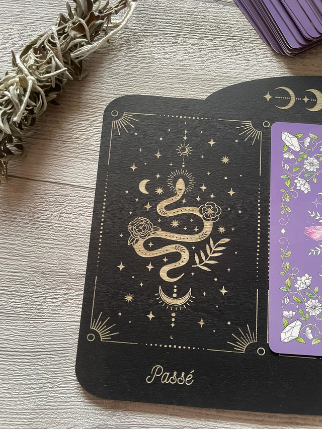 ✨ Sublimez vos guidances avec cette planche de tirage en bois gravé, créée pour accompagner vos lectures d’oracle et de tarot.